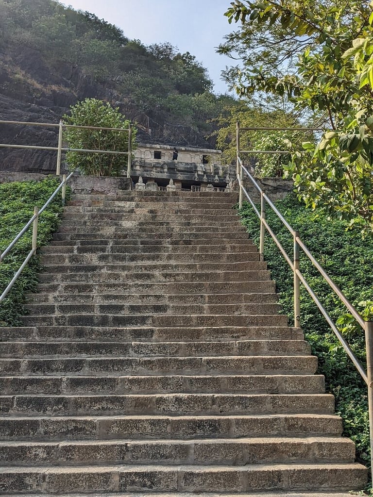 The caves are surrounded by green countryside. From the high hill above the cave overlooking the Krishna River many fine specimens of rock-cut architecture can be seen. These caves are part of Mangalagiri Tadepalle Municipal Corporation.
