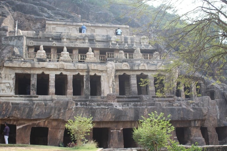 Originally serving as a Jain abode resembling the architecture of the Udayagiri and Khandagiri caves. The caves later became a site for Buddhist monks and eventually transformed into Hindu temples. Undavalli caves are carved in the Gupta style of rock-cut architecture, dated back to the 4th-5th century CE. The caves showcase a confluence of religious influences, reflecting the region's diverse spiritual history. Notably, the Vishnukundina kings, who ruled from 420–620 CE, contributed to the development of these caves, leaving behind intricate sculptures and architectural elements.
